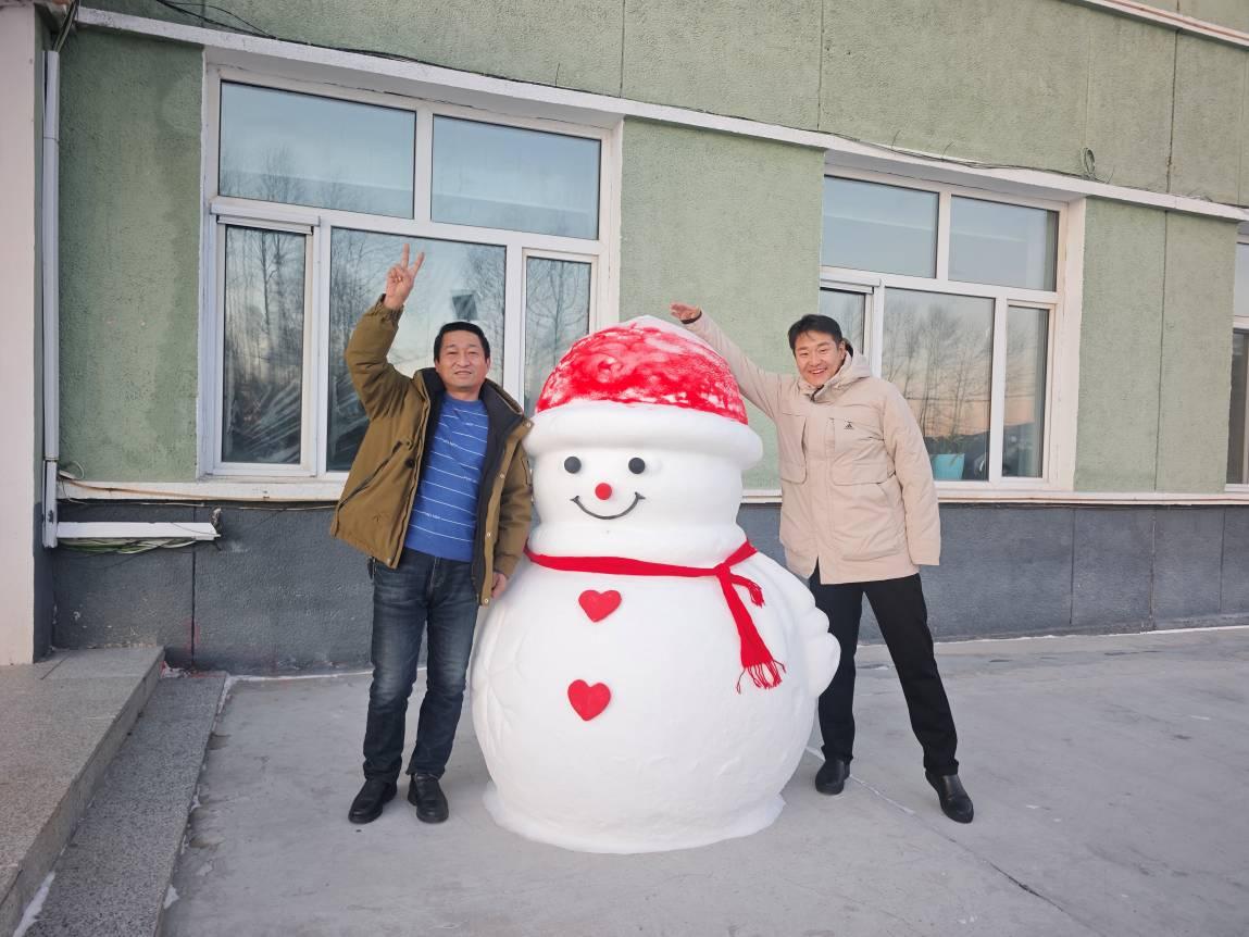 活動中,林場干部職工分工協(xié)作,有的手持鐵鍬鏟起蓬松的積雪,精準(zhǔn)填入雪人模具,用力按壓緊實,確保雪人身軀穩(wěn)固有型;有人手持小鏟子,細(xì)細(xì)修整雪人的輪廓,讓雪人的外觀更加美觀......鮮紅的圍巾繞在雪人脖頸,在白雪的映襯下格外耀眼,彩色涂料則成了創(chuàng)意的畫筆,大家或勾勒出彎彎的微笑嘴角,或點上心形的紐扣,給雪人增添了幾分俏皮與可愛。經(jīng)過大家的共同努力,一個個憨態(tài)可掬的“白胖子”便悉數(shù)亮相,成為林場冬日里一道獨特的風(fēng)景線。