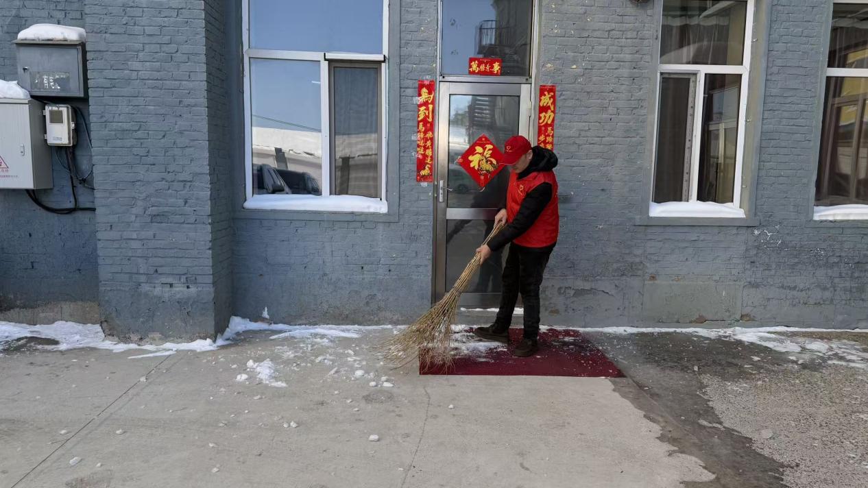 志愿者們身著紅色志愿服,清理積雪雜物、擦拭公共設(shè)施、整治衛(wèi)生死角,以實(shí)際行動美化場區(qū)環(huán)境。